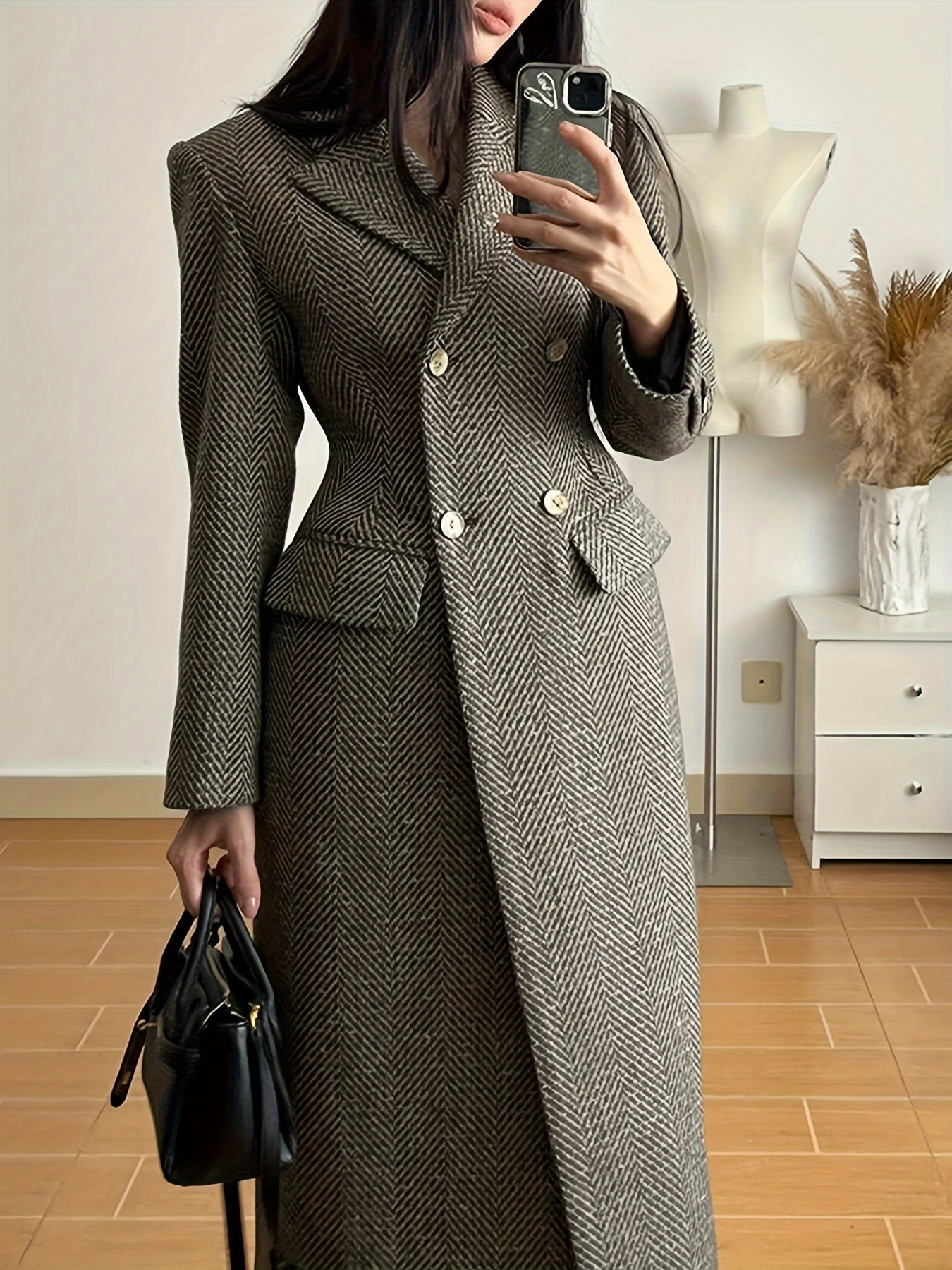[Double Row Button Windbreaker Jacket] Temperament Double Row Button Long Windbreaker Jacket