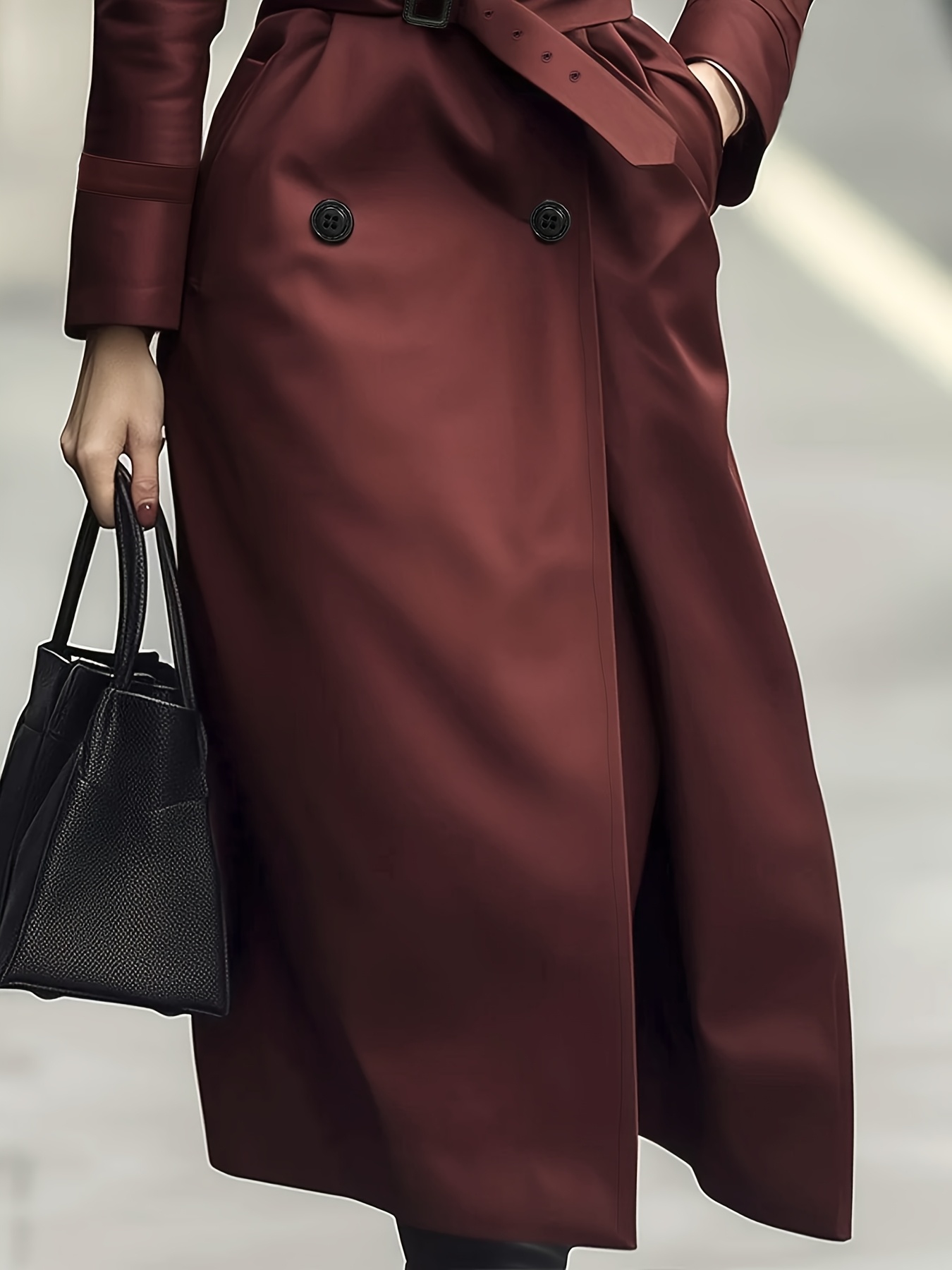 [Elegant Trench Coat] Elegant British Trench Coat | Women's Long Windbreaker with Belt, Non-Stretchy Formal & Everyday Outerwear, Machine Washable Fall Winter Coat in Burgundy/Red/Black - Special Line Collection