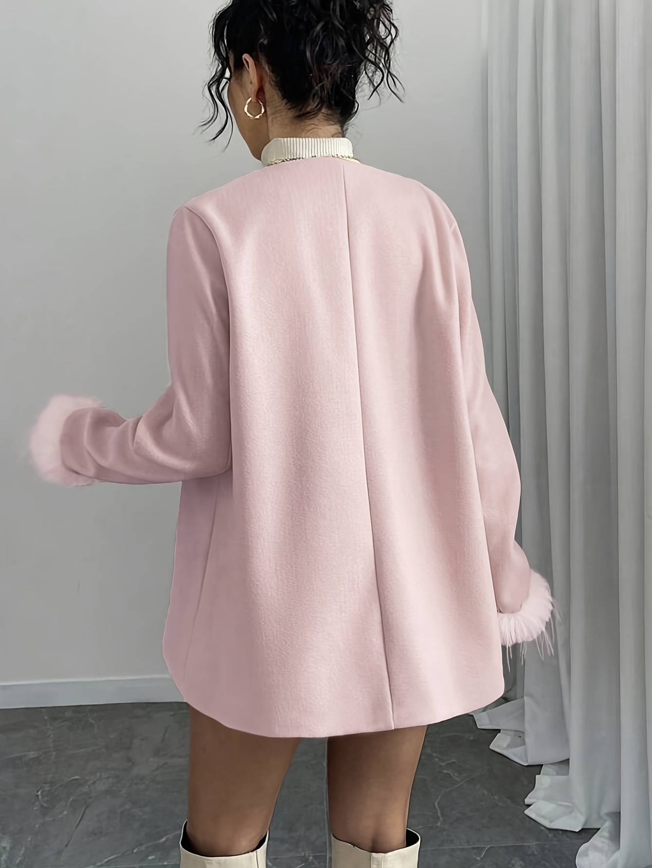 New Women's Elegant Tweed Coat - Chic Button Front Long Sleeve Coat with Structured Fit, Machine Washable Solid Color Outerwear for Fall Winter
