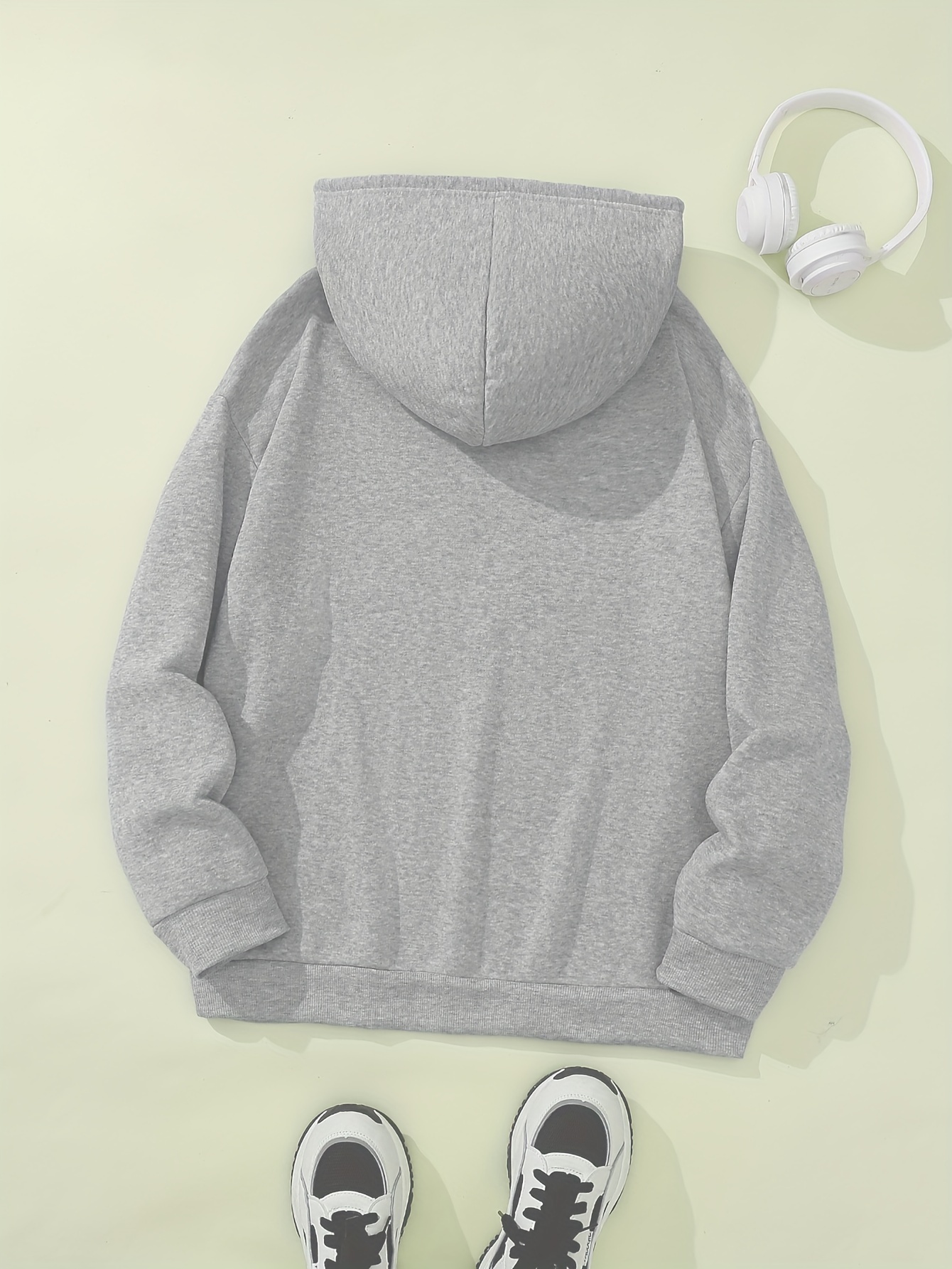 Plus Size Cozy Chic Letter Print Drawstring Hoodie - Soft Warm Fleece Lined Long Sleeve Sweatshirt with Relaxed Fit for Fall & Winter - Women's Comfortable Casual Wear for Everyday