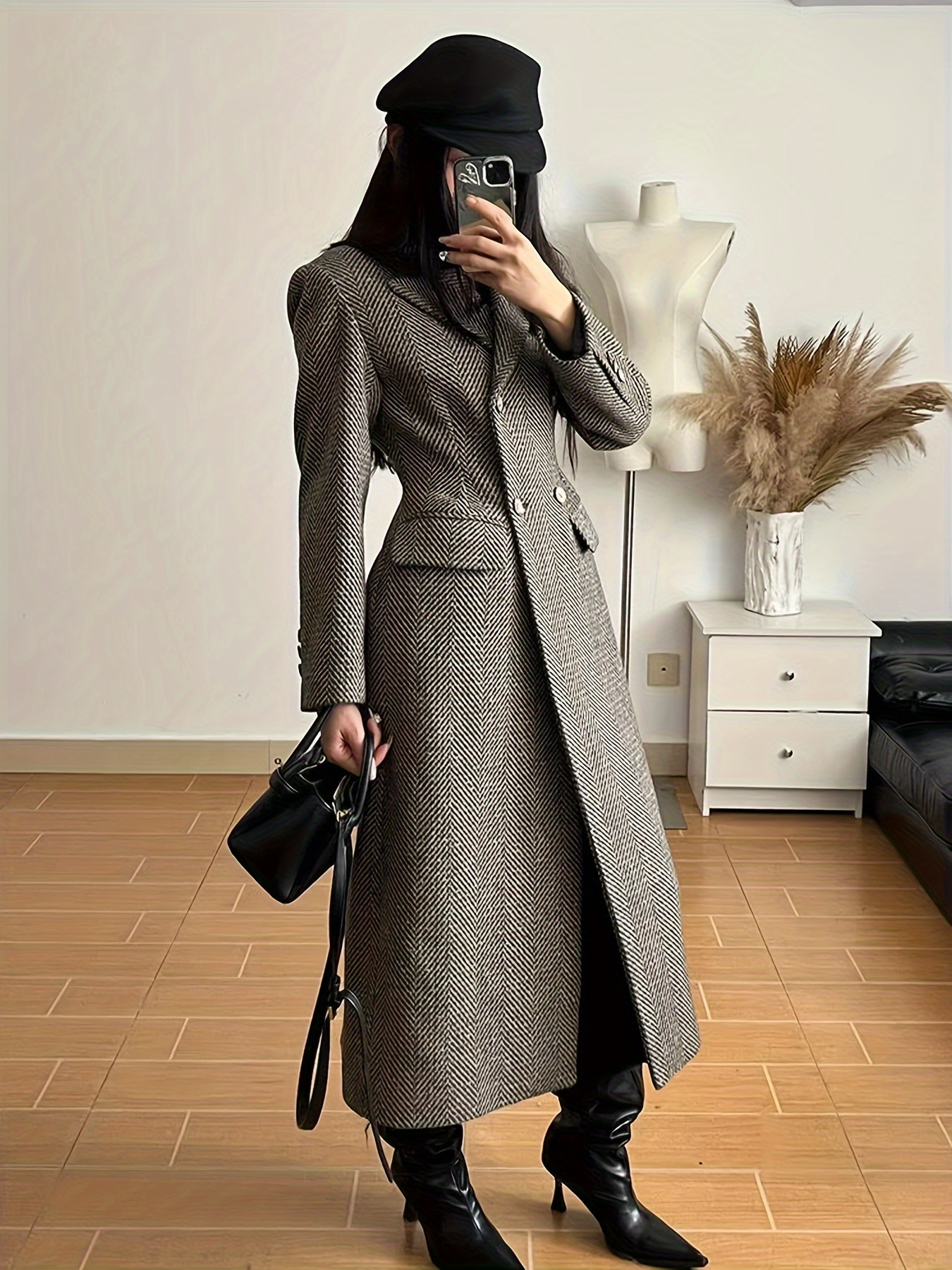 [Double Row Button Windbreaker Jacket] Temperament Double Row Button Long Windbreaker Jacket