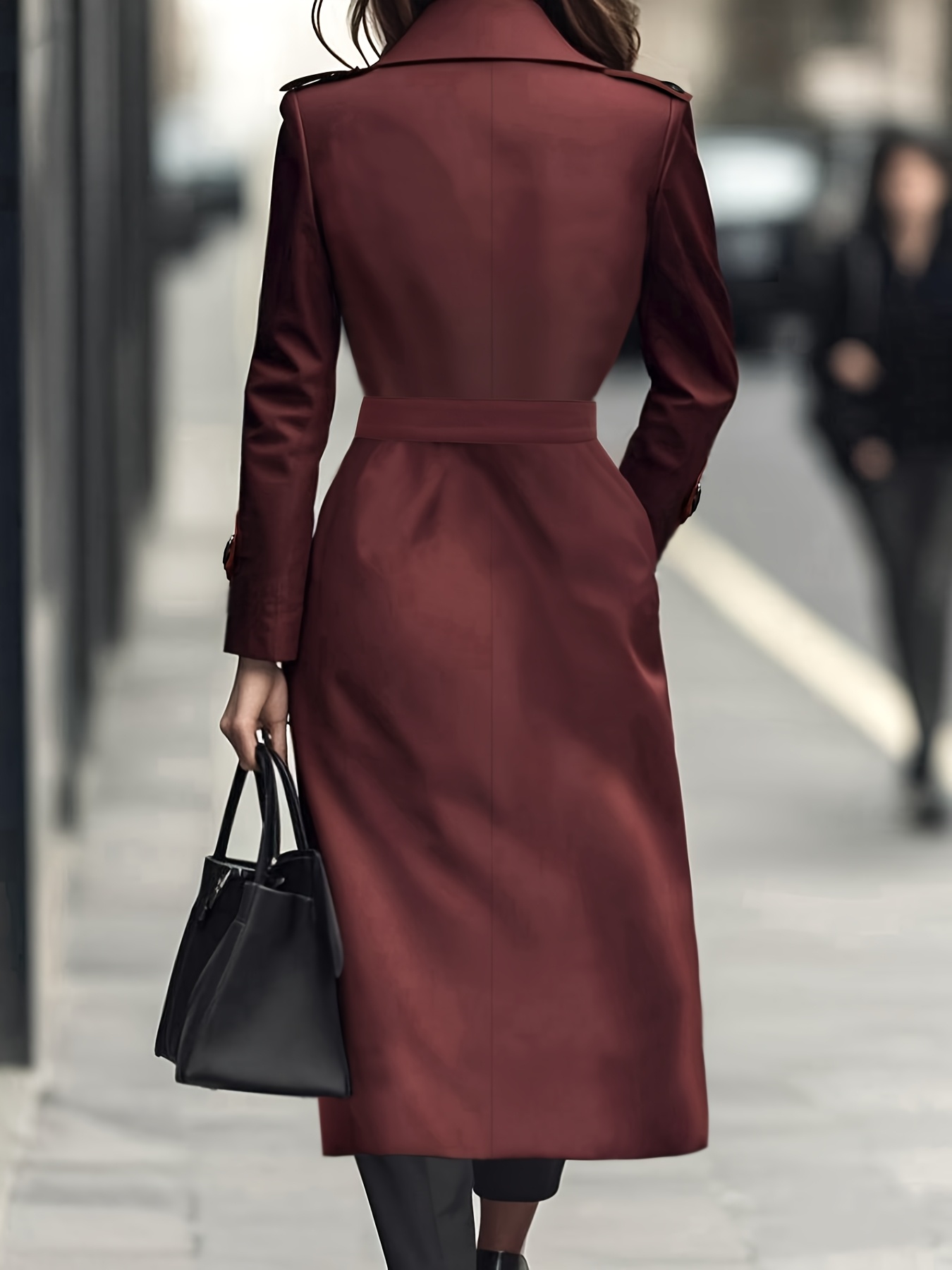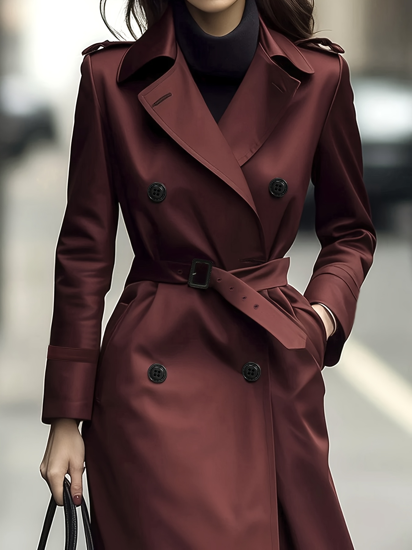 [Elegant Trench Coat] Elegant British Trench Coat | Women's Long Windbreaker with Belt, Non-Stretchy Formal & Everyday Outerwear, Machine Washable Fall Winter Coat in Burgundy/Red/Black - Special Line Collection