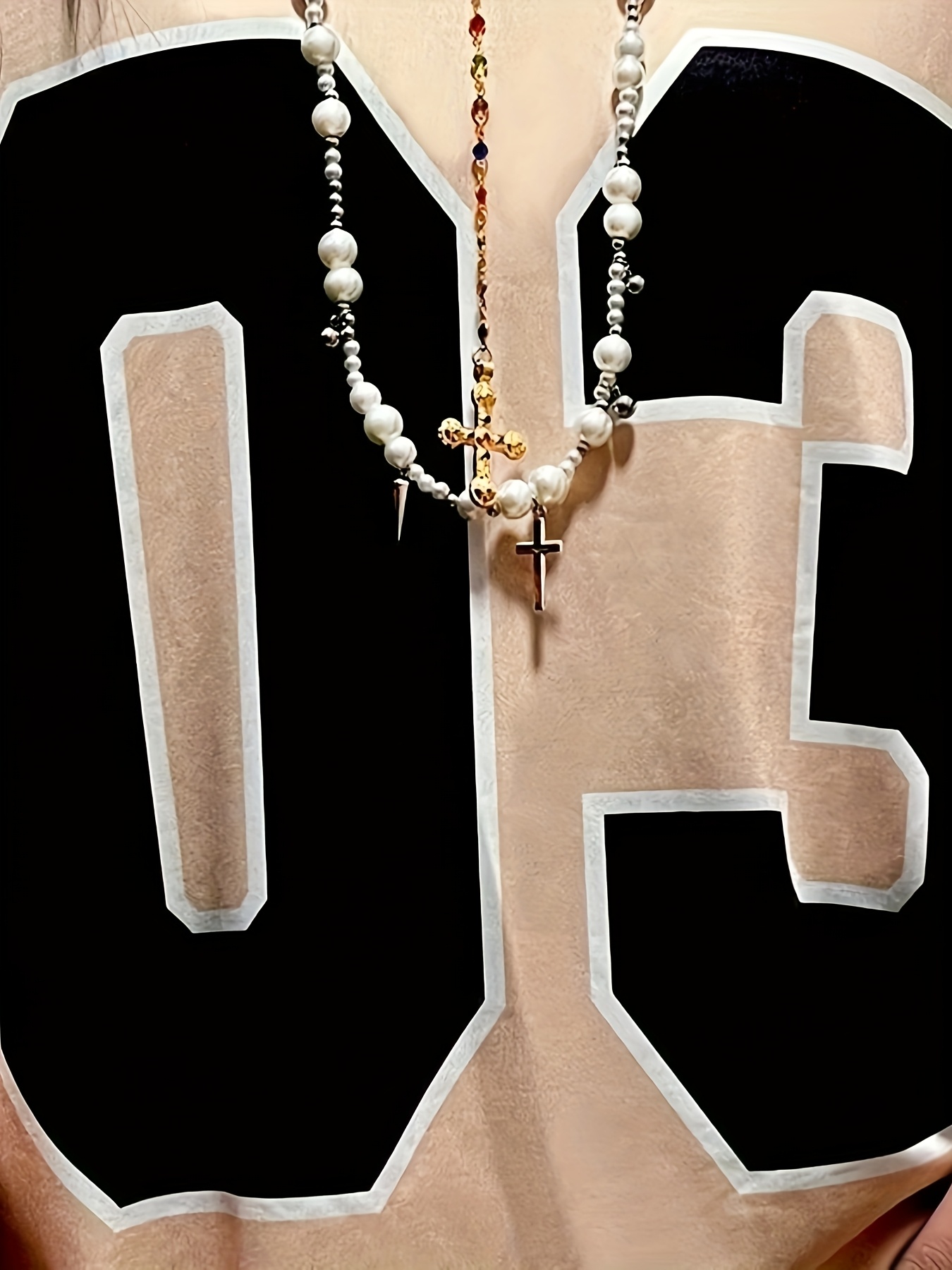 [Sporty Chic T-Shirt] Lightweight Breathable Women's V-Neck T-Shirt | Sporty Chic Design with Bold '03' Numerals & Leopard Print - Machine Washable, Spring/Summer Casual Top