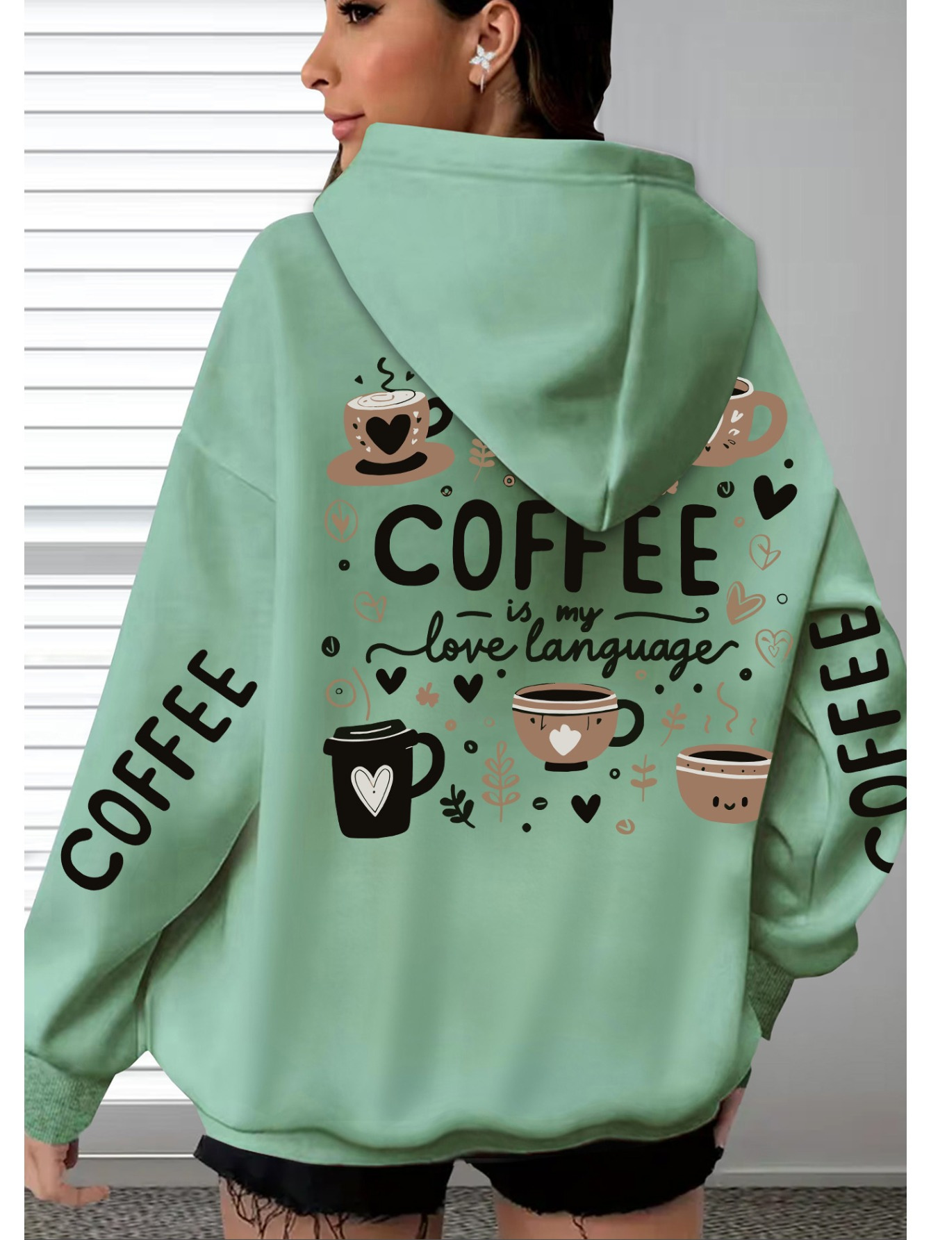 [Women's Oversized Hoodie] Women's Oversized Hoodie with Coffee Lover Graphic Print - Soft Casual Long Sleeve Pullover, Front Pockets, Machine Washable, All-Season Comfort for Casual Attire, Cute Hoodies
