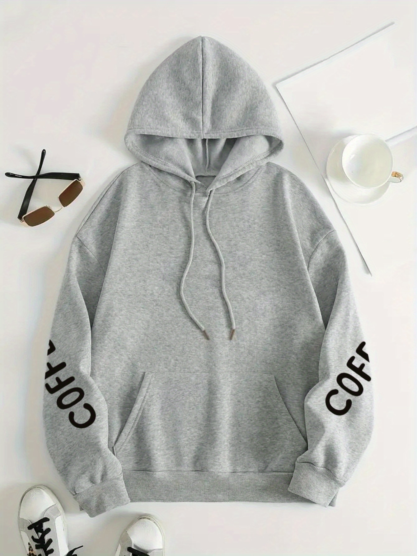 [Women's Oversized Hoodie] Women's Oversized Hoodie with Coffee Lover Graphic Print - Soft Casual Long Sleeve Pullover, Front Pockets, Machine Washable, All-Season Comfort for Casual Attire, Cute Hoodies